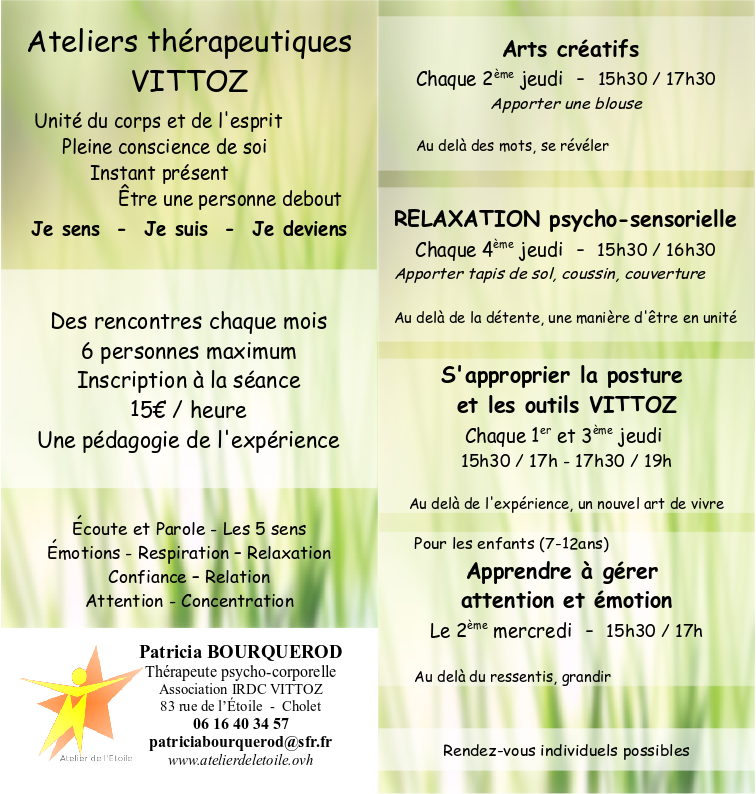 – d’unification intérieure (accueil et gestion de mes émotions)